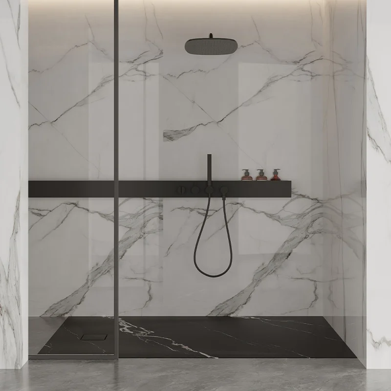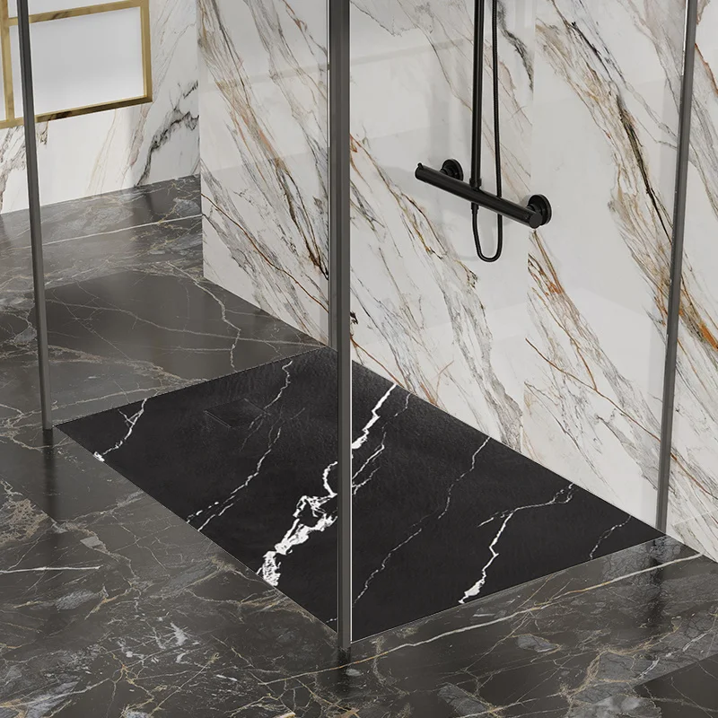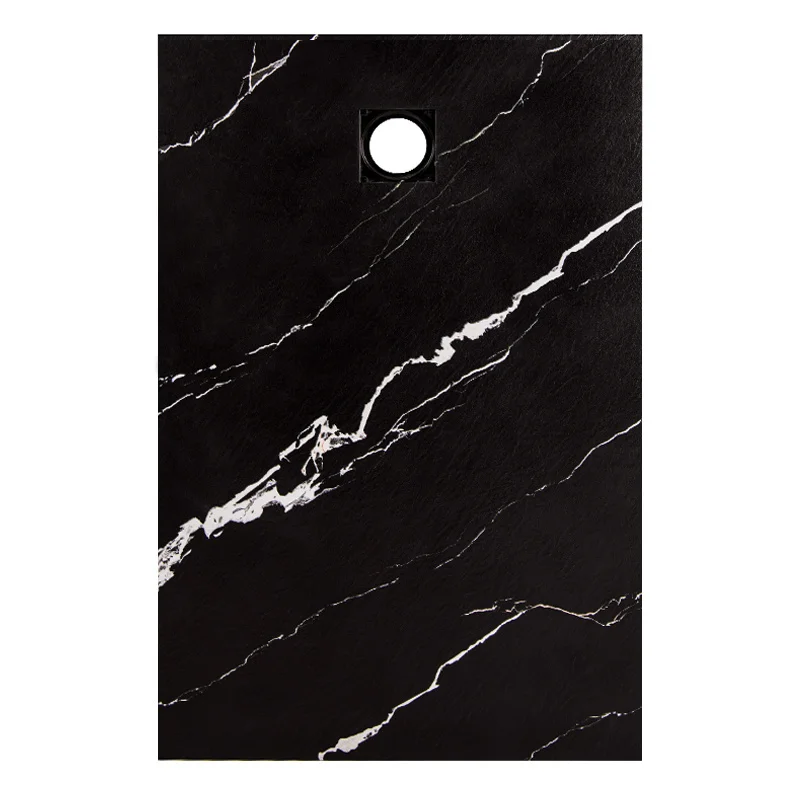 CAIR Rectangular Shower Tray 900×800×26 mm Black Marble Pattern with Siphon