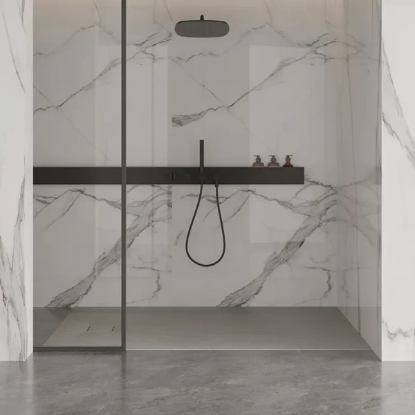 Traditional floor installation may be a choice for those who want to emphasize the character of the shower tray as a separate element in the arrangement. Its undoubted beauty and natural appearance of the stone attract the eye, adding a modern and stylish accent to the room. The shower tray exposed on the floor becomes an effective element of the decor. Flush-mounted installation in the floor is a solution for those who want minimalism and subtlety. Thanks to its low height, the shower tray perfectly matches the floor without visible edges or protruding elements.