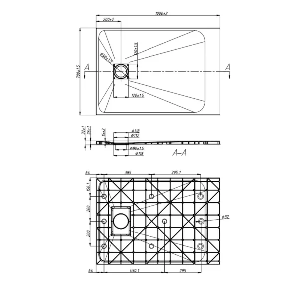 CAIR Rectangular Shower Tray 1000×700×26 mm Grey with Siphon