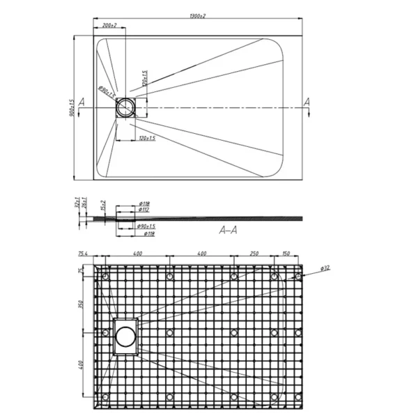 CAIR Rectangular Shower Tray 1300×900×26 mm White with Siphon