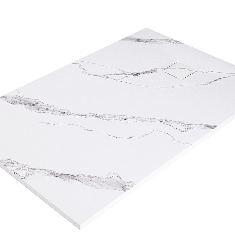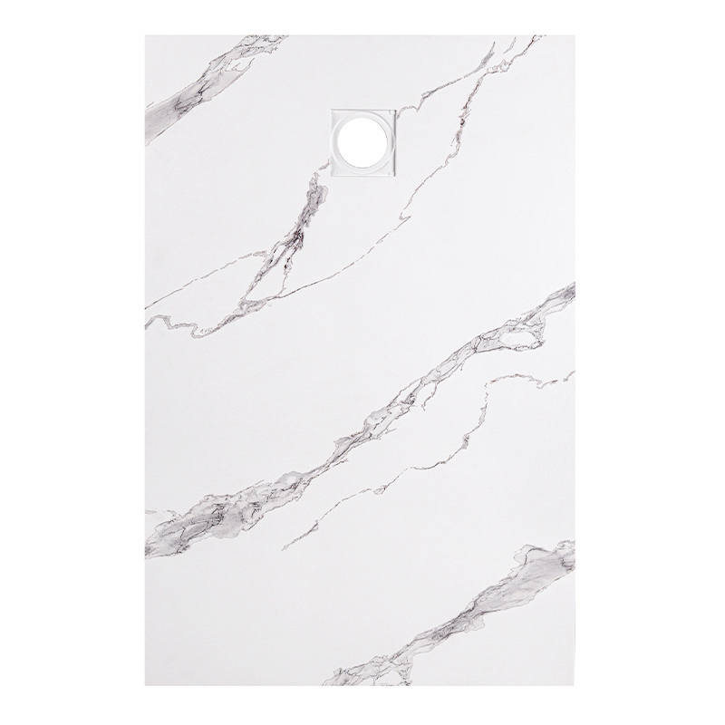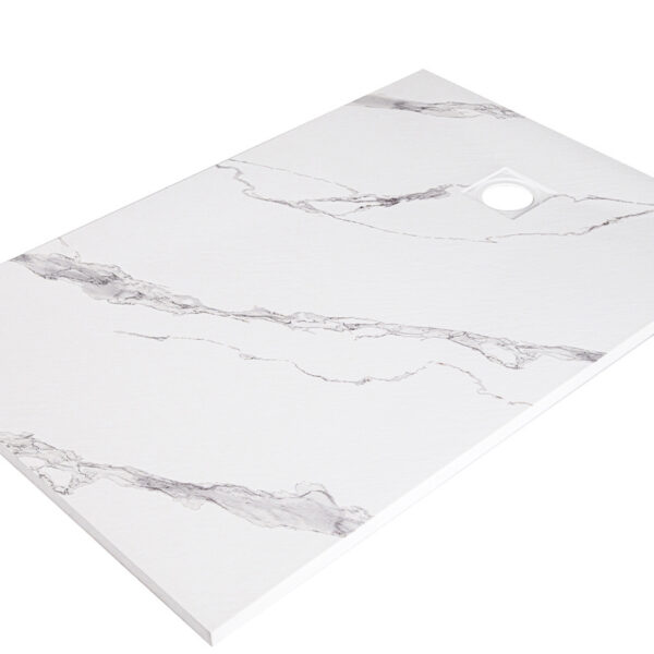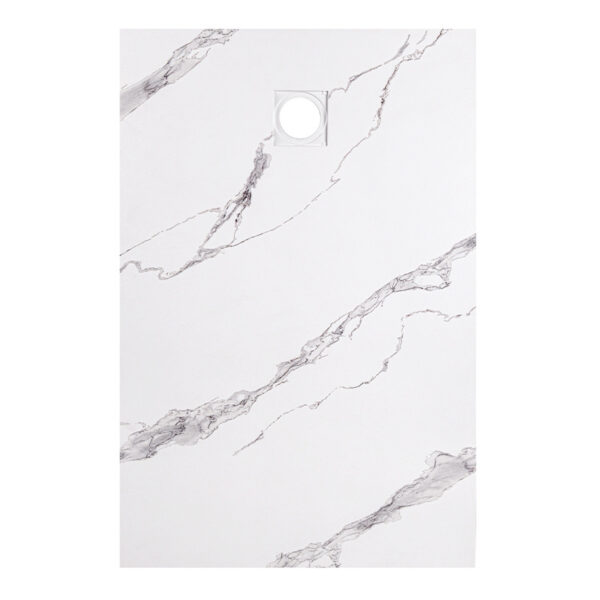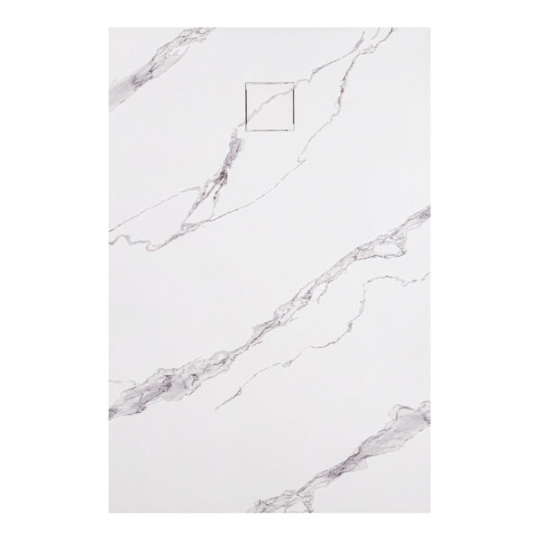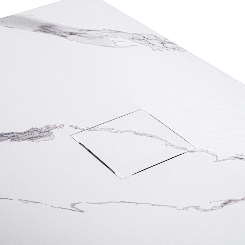 Rectangular shower tray CAIR-WH-120×90-MAR, 1200×900×26 mm, white marble pattern, with siphon