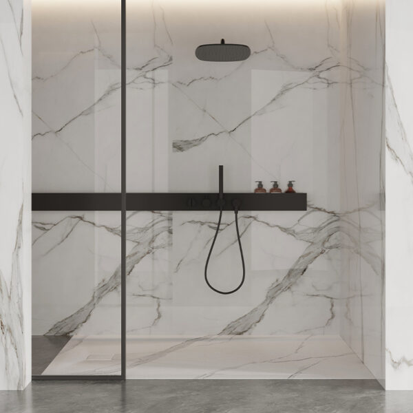 Traditional floor installation may be a choice for those who want to emphasize the character of the shower tray as a separate element in the arrangement. Its undoubted beauty and natural appearance of the stone attract the eye, adding a modern and stylish accent to the room. The shower tray exposed on the floor becomes an effective element of the decor. Flush-mounted installation in the floor is a solution for those who want minimalism and subtlety. Thanks to its low height, the shower tray perfectly matches the floor without visible edges or protruding elements.