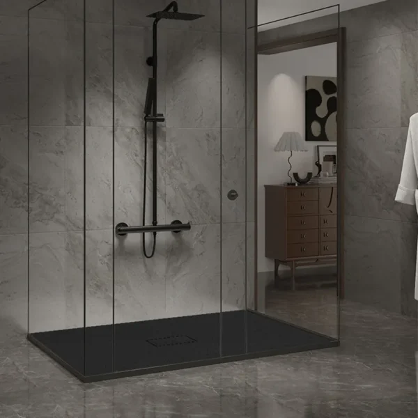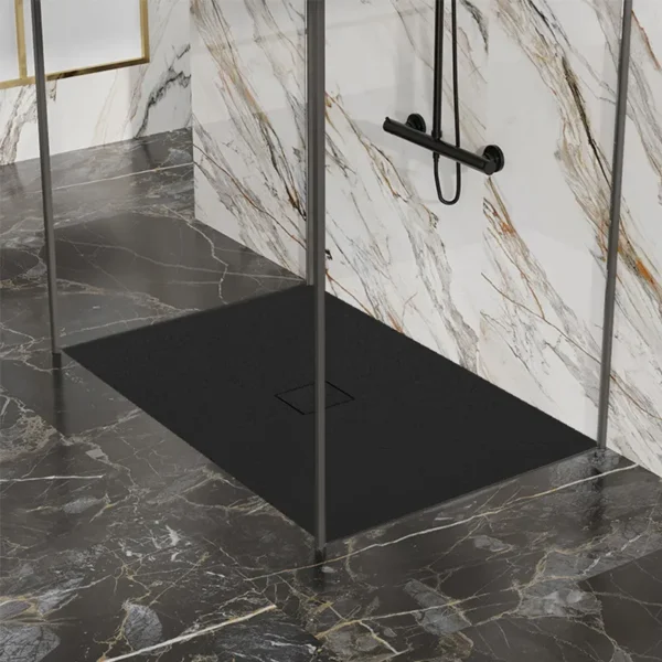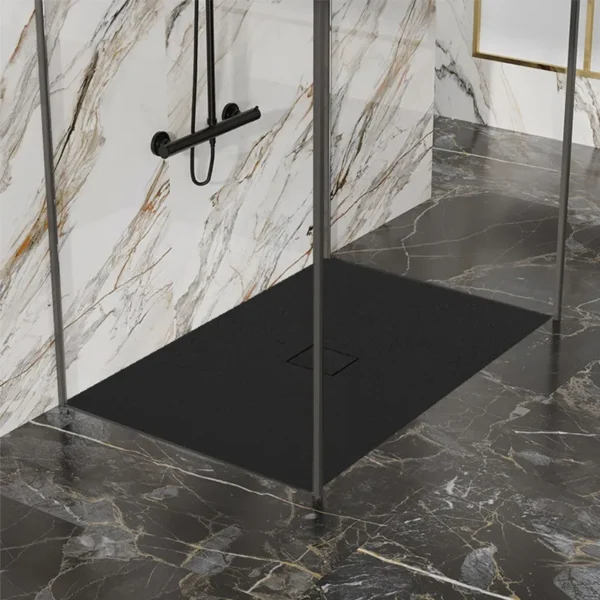 TUKO Rectangular Stone Shower Tray 1200×1000×26 mm Black with Siphon