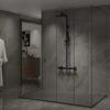 The natural surface of the shower tray introduces a unique character to the interior, which delights with the aesthetics and modernity of the room.