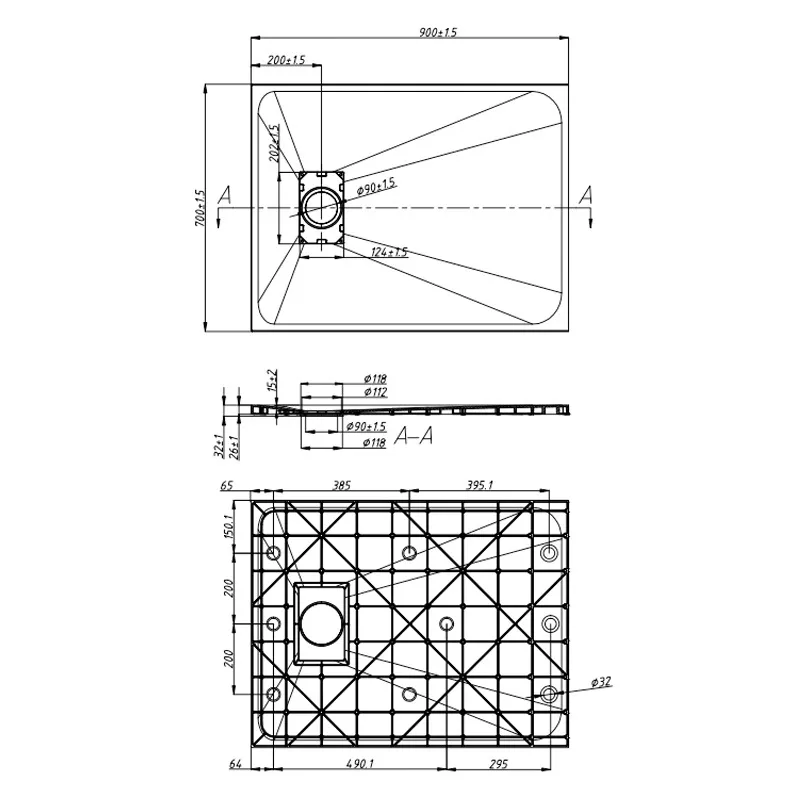 • Drain diameter: 90 mm