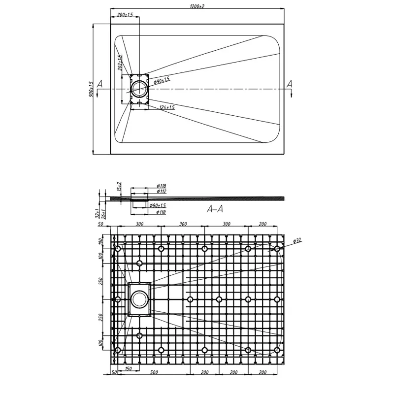 TUKO Rectangular Shower Tray 1200×900×26 mm Grey with Siphon