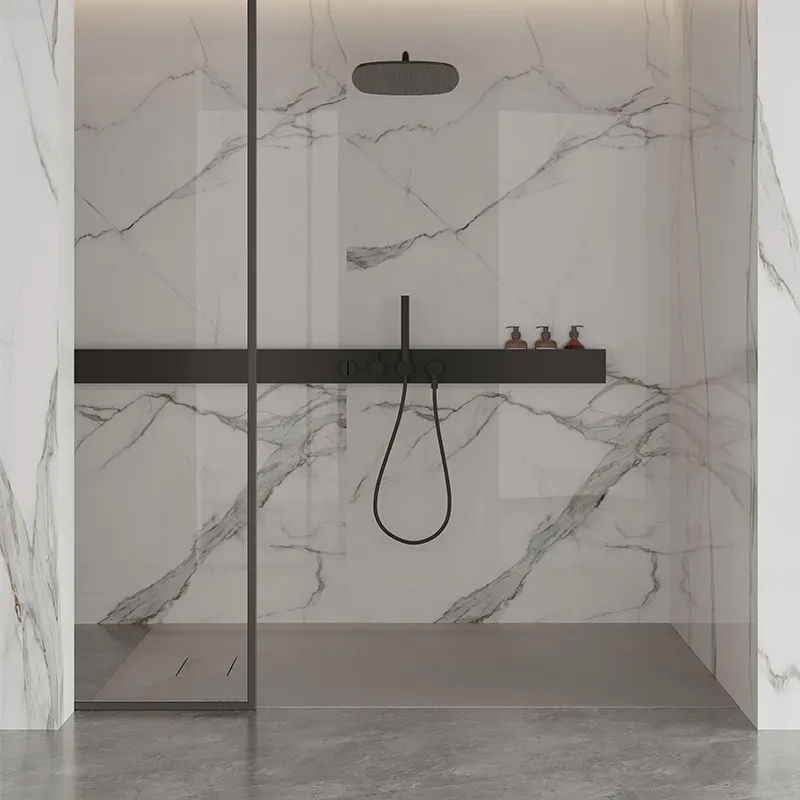 Traditional floor installation may be a choice for those who want to emphasize the character of the shower tray as a separate element in the arrangement. Its undoubted beauty and natural appearance of the stone attract the eye, adding a modern and stylish accent to the room. The shower tray exposed on the floor becomes an effective element of the decor. Flush-mounted installation in the floor is a solution for those who want minimalism and subtlety. Thanks to its low height, the shower tray perfectly matches the floor without visible edges or protruding elements.