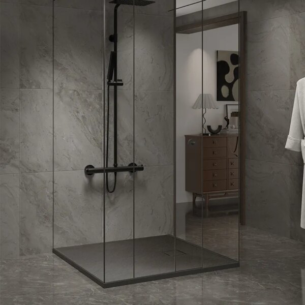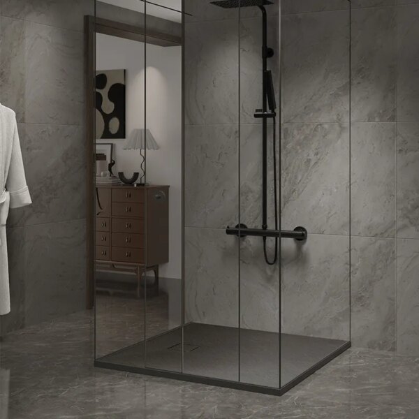 Ultra flat: The shower tray, whose low threshold is an undoubted advantage, attracts attention with its functionality. It has been designed to make using the shower as easy as possible, eliminating the need to climb a high threshold or take a dangerous step when entering or exiting. This solution is particularly beneficial for people with limited mobility, the elderly and families with small children because it minimizes the risk of trips and falls.