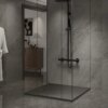 Possibility of installation on or on the floor: Traditional installation on the floor may be a choice for those who want to emphasize the character of the shower tray as a separate element in the arrangement. Its undoubted beauty and natural stone appearance attract attention, adding a modern and stylish accent to the room. A shower tray exposed on the floor becomes an eye-catching design element. Installation recessed into the floor is a solution for those who want minimalism and subtlety. Thanks to its low height, the shower tray fits perfectly with the floor without visible edges or protruding elements.