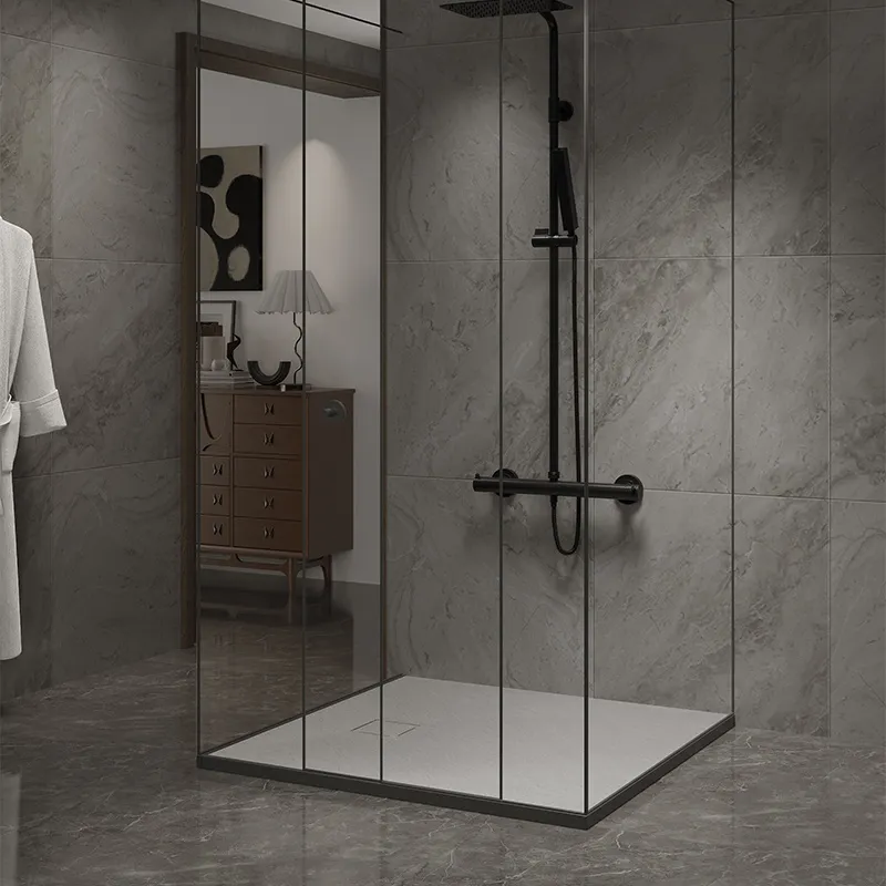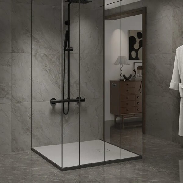 Ultra flat: The shower tray, whose low threshold is an undoubted advantage, attracts attention with its functionality. It has been designed to make using the shower as easy as possible, eliminating the need to climb a high threshold or take a dangerous step when entering or exiting. This solution is particularly beneficial for people with limited mobility, the elderly and families with small children because it minimizes the risk of trips and falls.