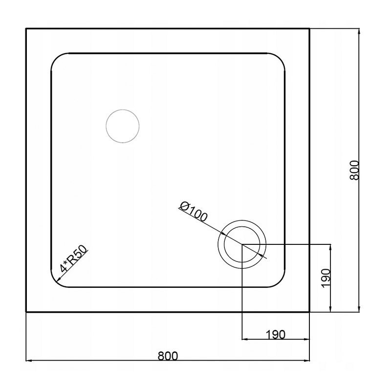 - White square shower tray 800x800x50mm
