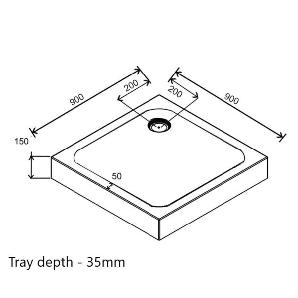 Square shower tray 900x900mm SXL02B black white siphon 15cm deep high