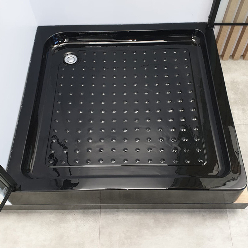 The shower tray has a perforated bottom which reduces slipping.