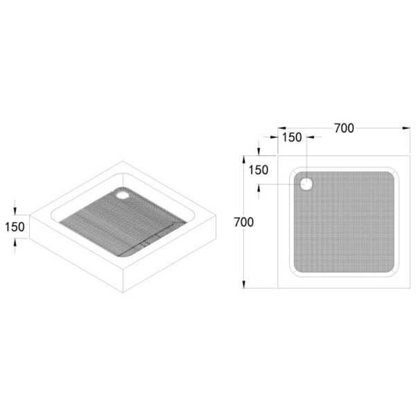 Square shower tray 700x700mm SXL05A white white siphon 15cm deep high