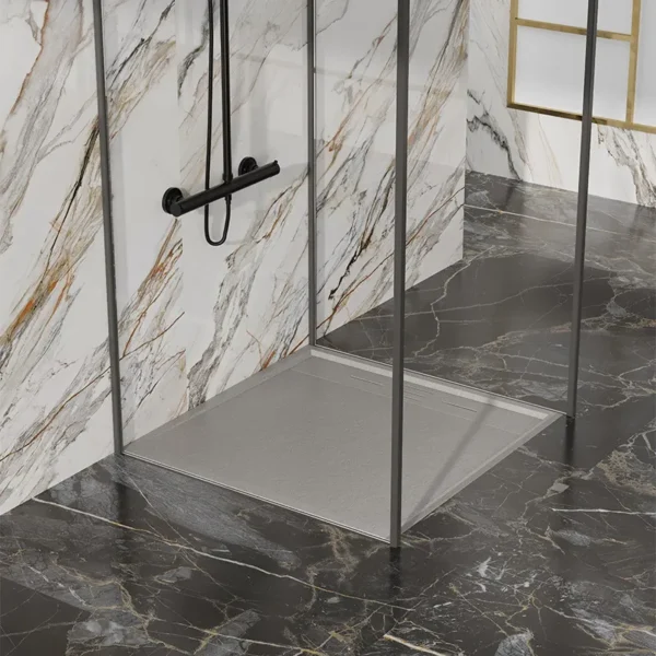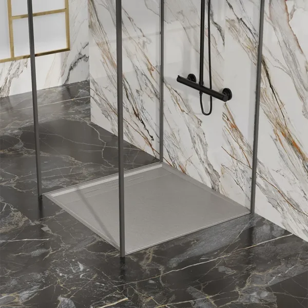 CADO Square Stone Shower Tray 800x800x30mm Grey with Siphon