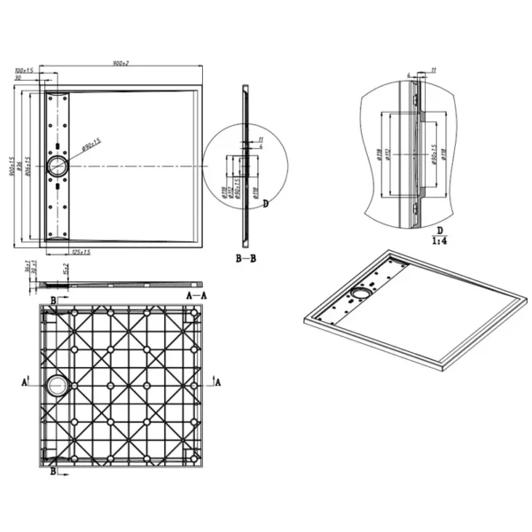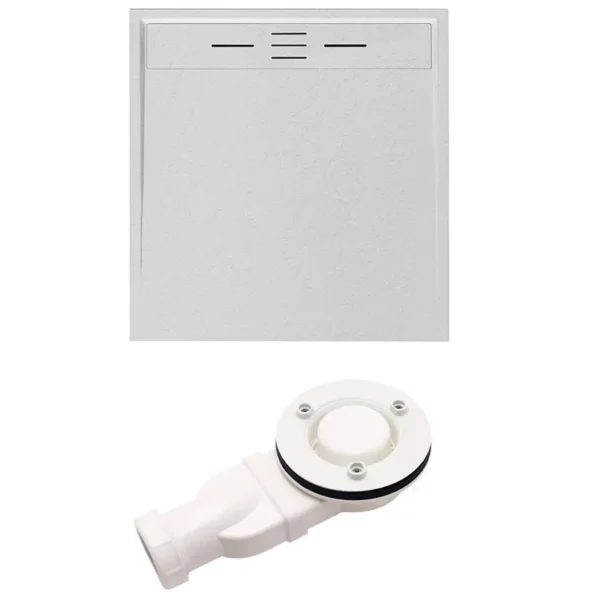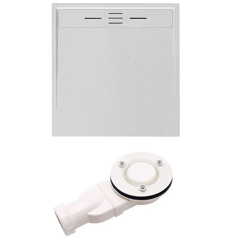 CADO Square Stone Shower Tray 900x900x30mm White with Siphon