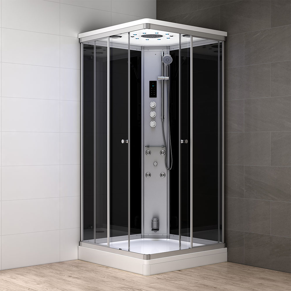 Shower cabin with hydro massage and steam sauna GARNET1010 Black 1000x1000x2170mm