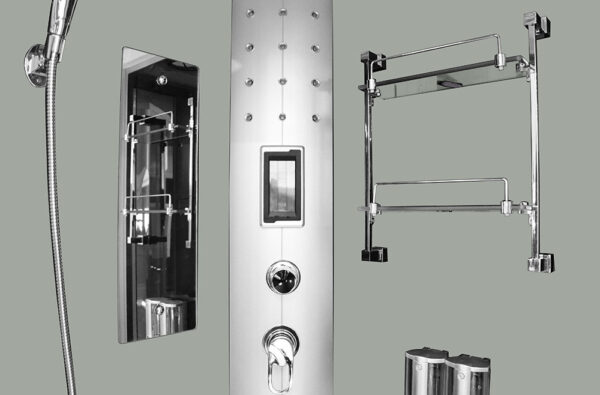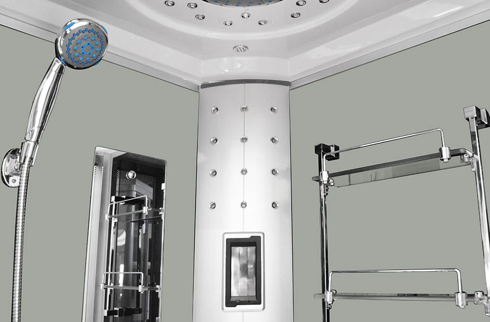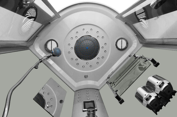 The electronic control panel with Bluetooth connection, radio, and speaker allows you to enjoy your favorite music while showering, while the built-in air ionizer improves air quality inside the cabin.