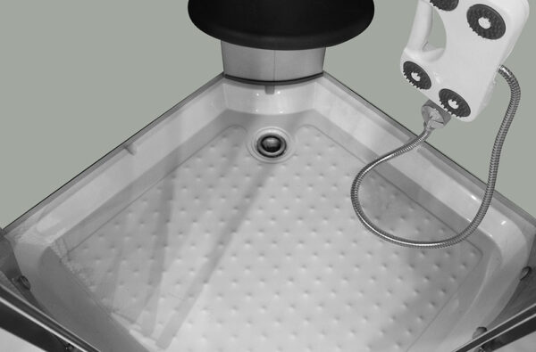Made from high-quality materials – acrylic tray, tempered glass, and aluminium frame – the shower cabin ensures durability, easy cleaning, and elegant design. The anti-slip shower tray bottom guarantees safety.