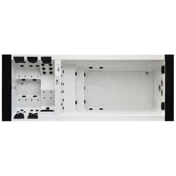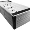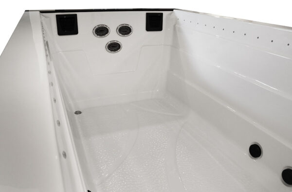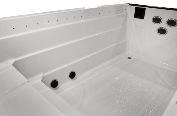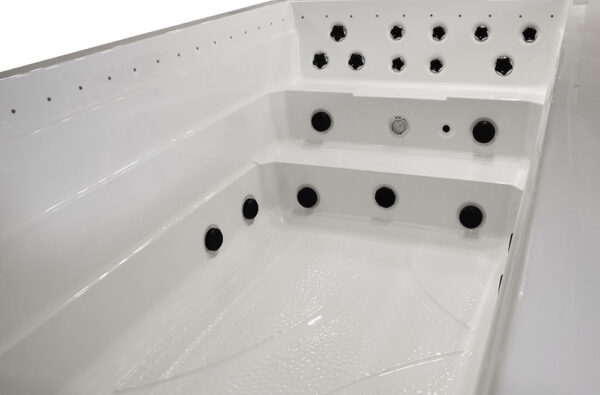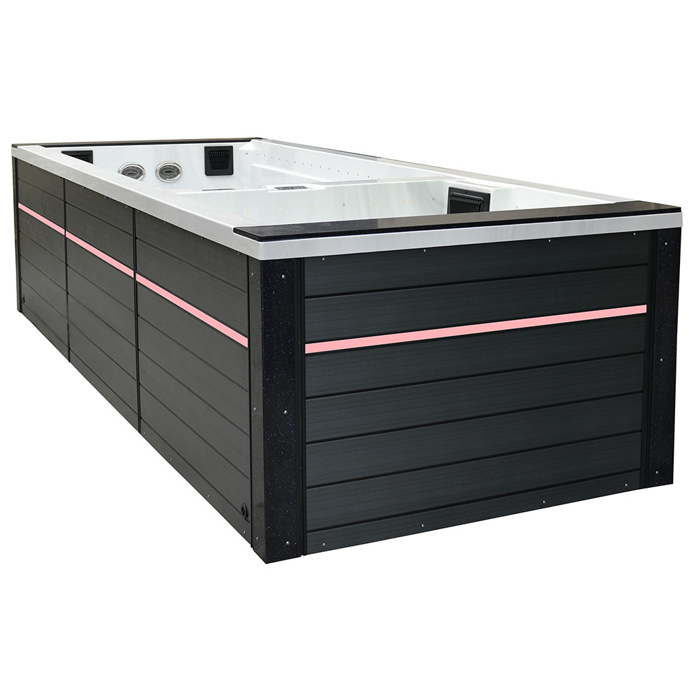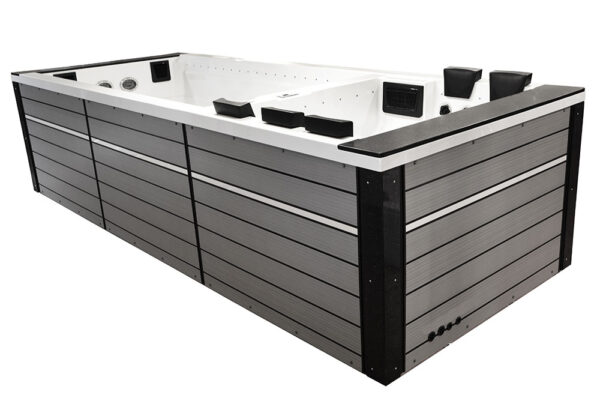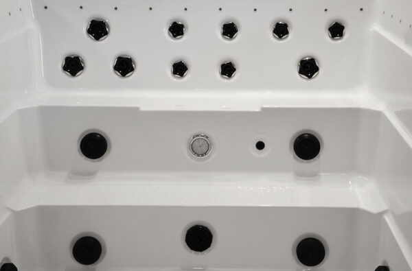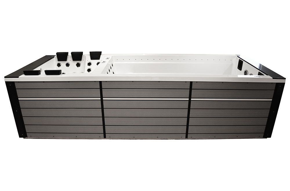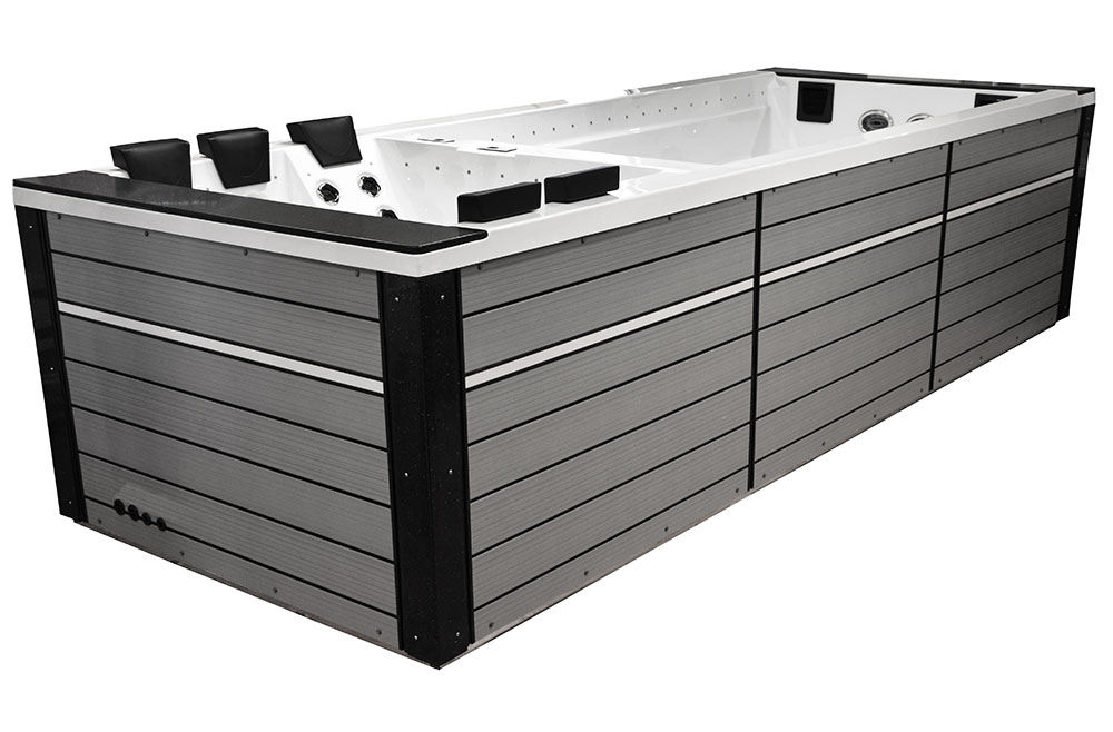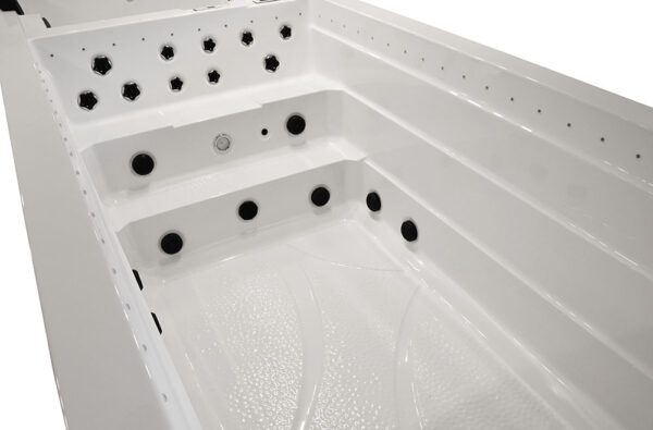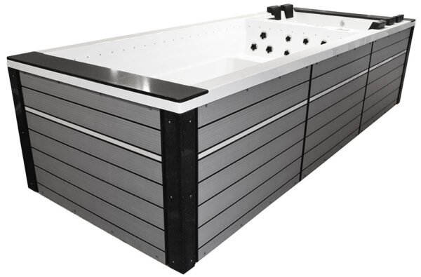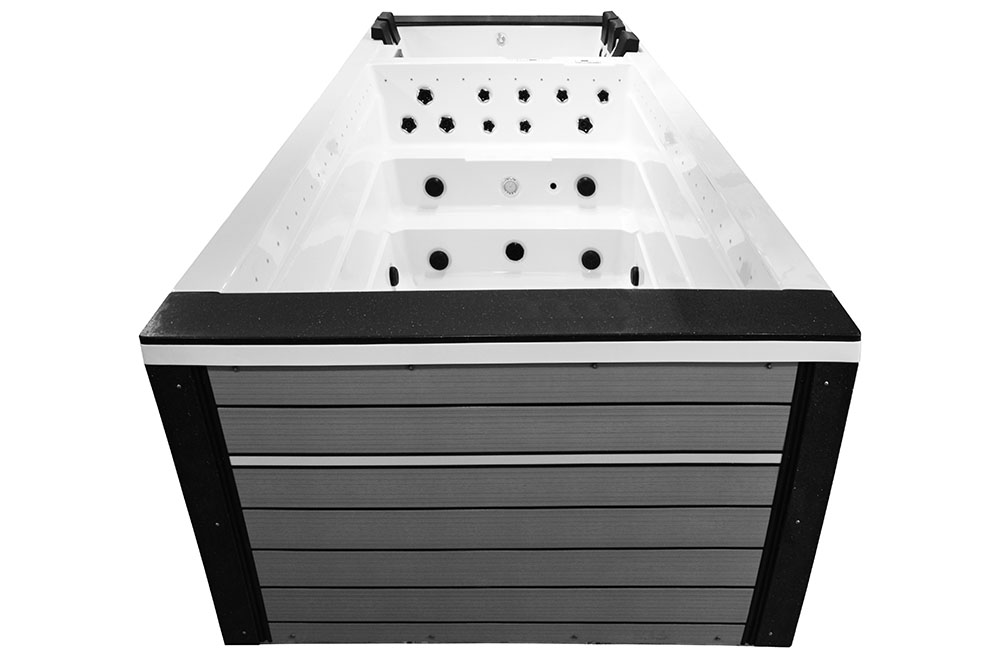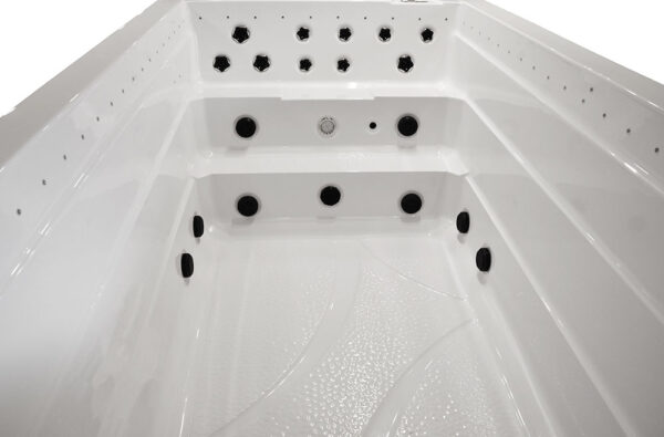 -The pools are adapted for use indoors and outdoors, in summer and winter, thanks to the thermal coating and full insulation of the bottom of the basin and the casing. The hot water is kept at the level of electricity costs consumption over a long period of time. Illuminated handrails or water poles add to the exercise for the whole exerciser.