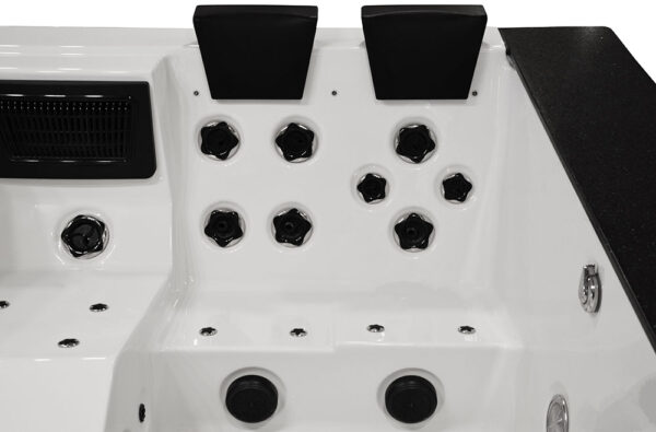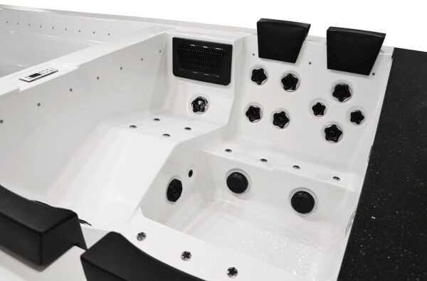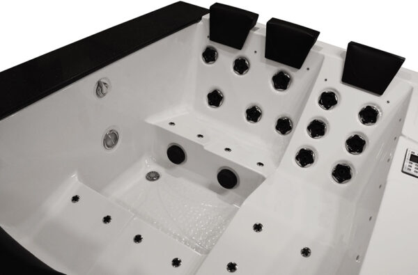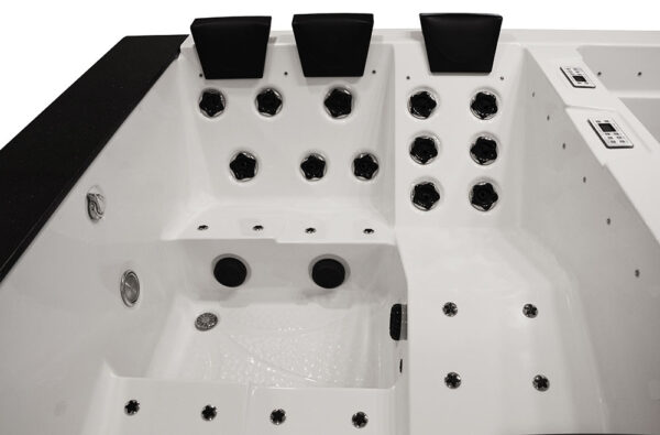 -Our bathtubs and swimming pools are equipped with a 3000 W instantaneous water heater. Thanks to it, you can raise the water temperature and keep it at a high level. The heater is an indispensable device when using the SPA.