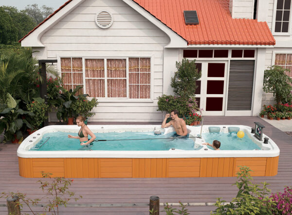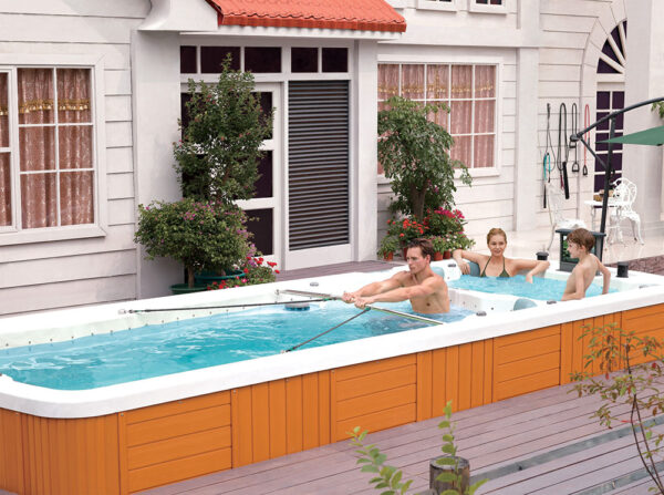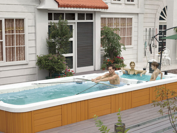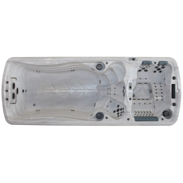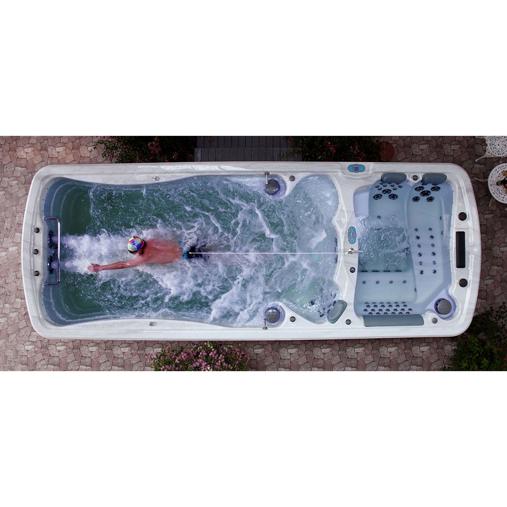 -Swim Spa LUNA 18188 has two independent zones; the first is a swimming pool, the second is a SPA bath with hydro-massage. The zones work separately; they have separate electronics and water. The statutory temperature is individual for each zone separately.