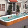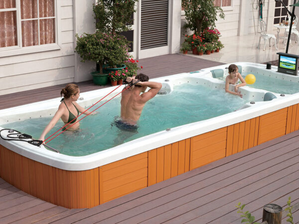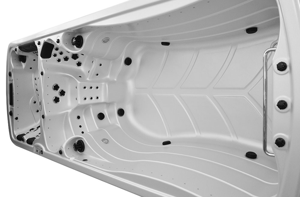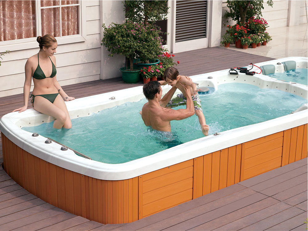 -The pools are adapted for use indoors and outdoors, in summer and winter. Thanks to the thermal coating and full insulation of the bottom of the basin and the casing, the hot water is kept at the electricity consumption costs over a long time. Illuminated handrails or water poles add to the exercise for the whole exerciser.