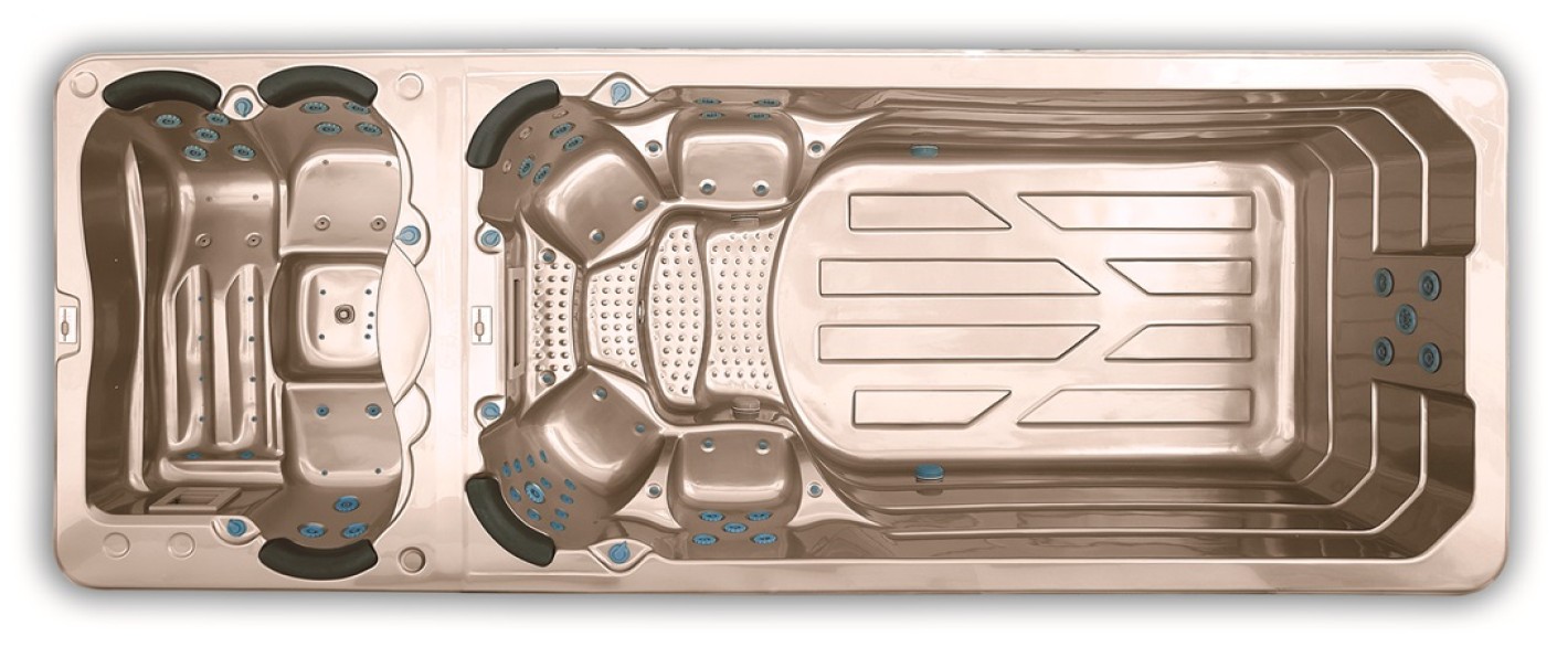 SWIMMING POOL IS DIVIDED: one half takes the SPA TUB, and the other half is POOL.