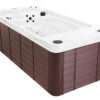 The pools are adapted for use both inside and outside, in summer and winter. Thanks to the thermal coating and full insulation of the bottom of the basin and the casing, the water’s heat is kept at the same level for a longer time. Besides, electricity costs are minimized. Illuminated handrails or water poles add color to the entire device.