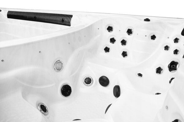 The jets in the bathtub and the pool are chrome-plated. You do not have to worry that these jets will become covered with limescale. Each water nozzle has an aeration function, which consists of adding air to the water system, which increases the strength of the water massage.