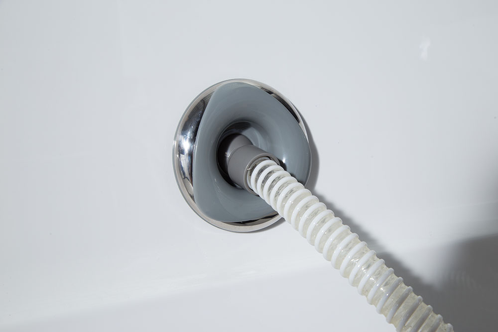 Two ball valves are installed next to the circulating pump and the heater, which in case of failure of a given part, can be turned off and replaced without the need to drain the water from the bathtub. Manifolds and pumps have additional pipes that are connected to the drain. When draining the water from the tub, the water comes down from all lines by gravity and pumps without having to blow out and disassemble the pumps.