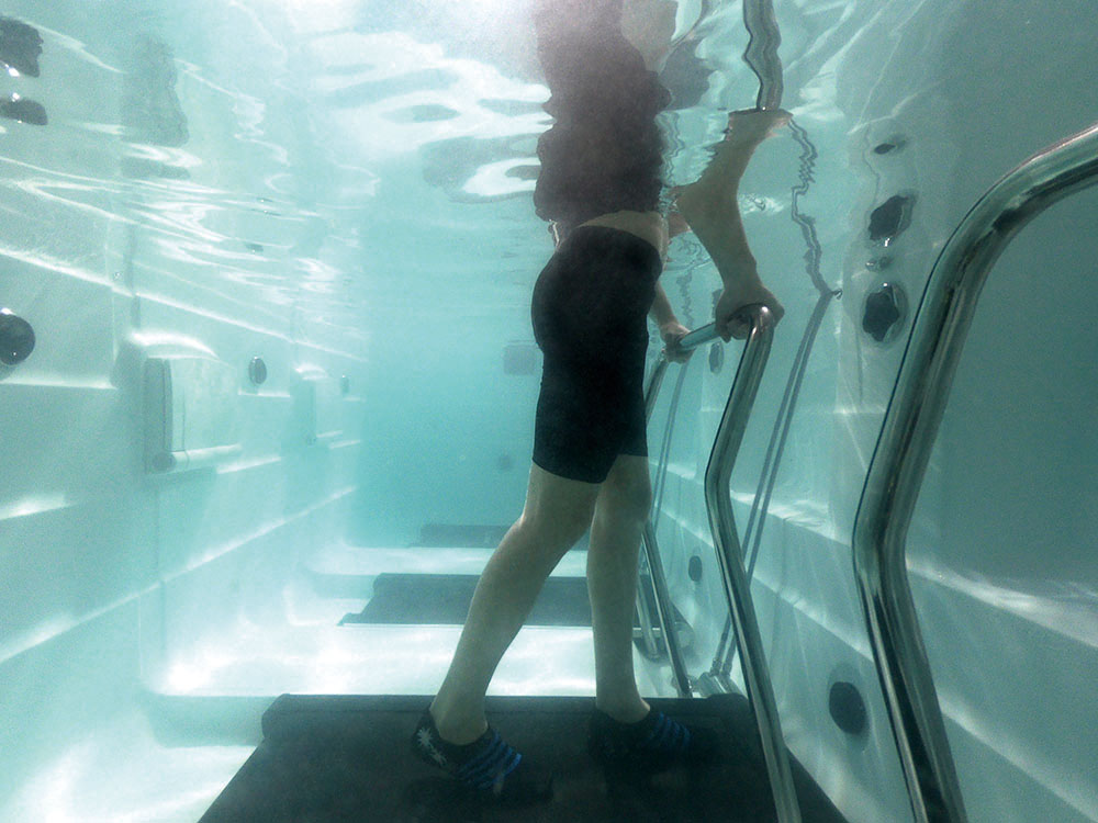 Fluid drive – the underwater treadmill is mechanically driven. The drive of the device is devoid of electrical components, which guarantees the safety of treadmill users.