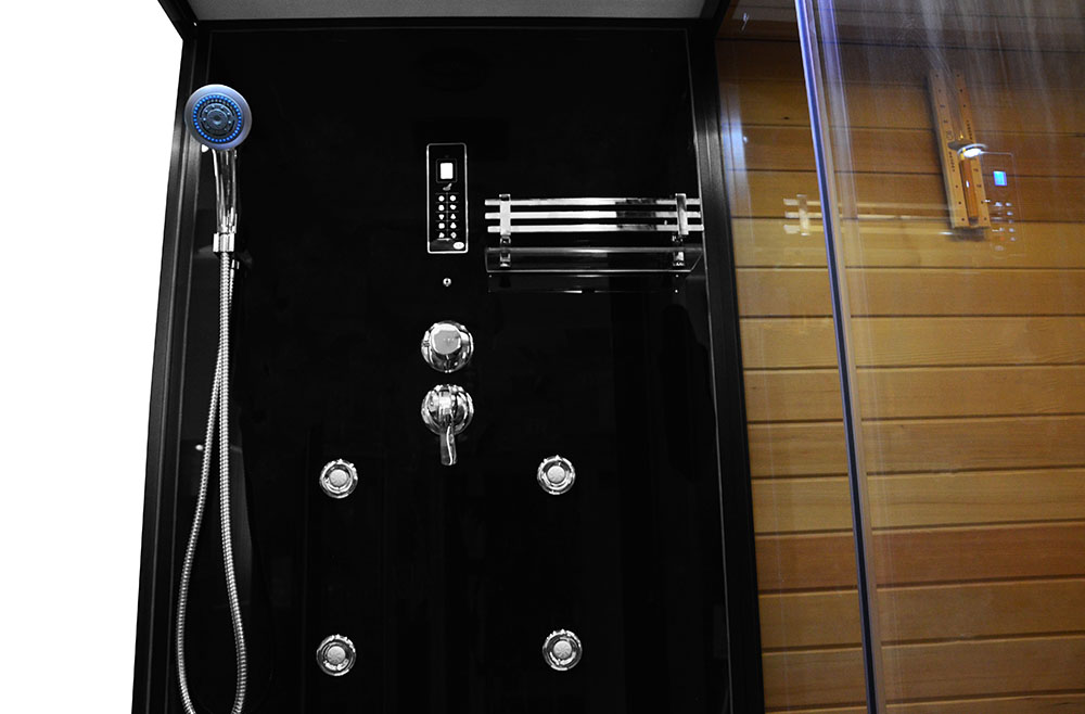 Dry-steam sauna and cabin with hydro-massage function