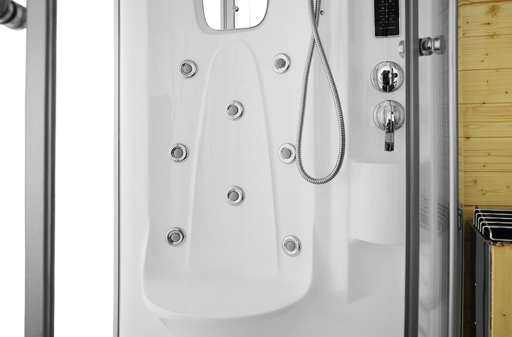 Dry-steam sauna and cabin with hydro-massage function
