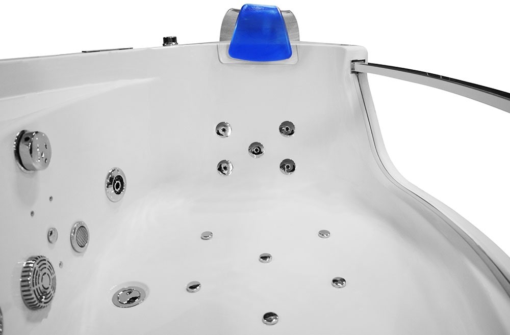 Stainless steel construction – the entire bathtub is based on a stable stainless steel frame, thanks to which the bathtub has a strong and durable support base, which is very important for larger bathtubs. The weight of a 2-person whirlpool tub varies from 80-120 kg, including the weight of the water, and people come out with a relatively large weight, which requires solid support, which is why a good bathtub design is of key importance.