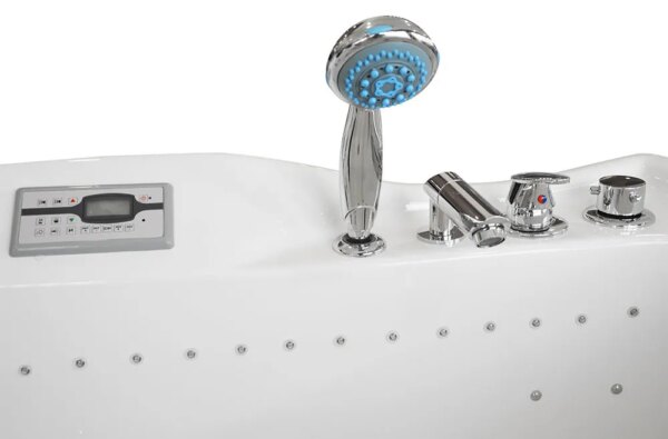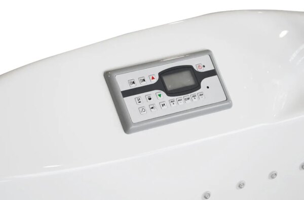 Control panel – the panel supports all functions in the bathtub, starting from pumps, ozone system, lighting, radio and ending with the heater. In addition, our models are equipped with a remote control, thanks to which you can control the bathtub without reaching the panel, which makes our bathtub even more comfortable and convenient.