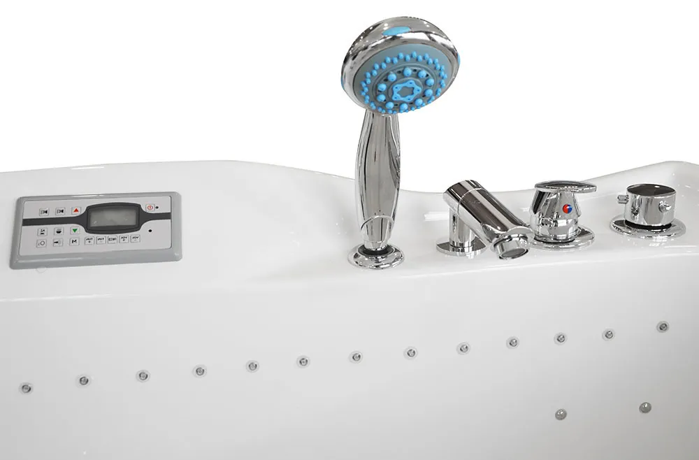 SUM series bathtubs are equipped with a 1.5 kW instantaneous water heater and a temperature sensor. This prevents the water from cooling down during prolonged use of the bathtub. The temperature can be set from 35 ° C to 40 ° C. The heater, in addition to maintaining the water temperature, can also raise it, up to a maximum of 40 ° C.