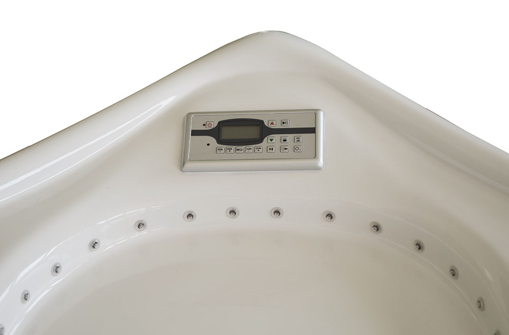 Control panel, remote control – the panel supports all functions in the bathtub starting from starting the pumps, ozone, lighting, radio, and the heater end.