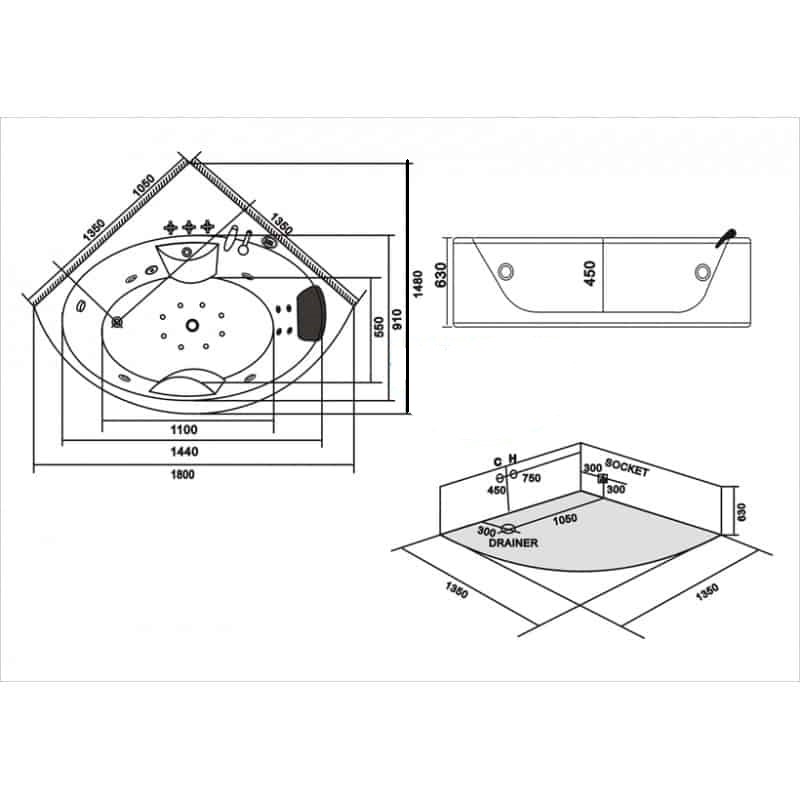 - 8 air jets: Mounted on the bottom of the bathtub. JACUZZI EFFECT !!