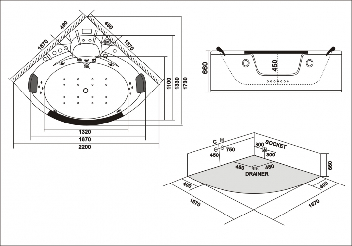 *16 air jets mounted on the bottom of the bathtub (Jacuzzi function) !!!