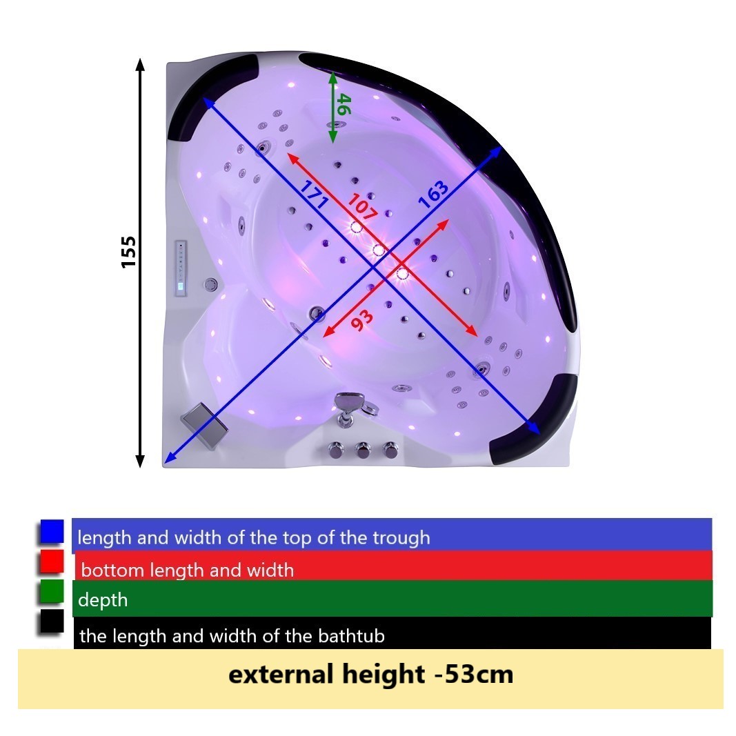 If you buy a whirlpool tub, it must have an OZONE DISINFECTION FUNCTION; the tub drainage will be free of bacteria, algae, and other impurities. Additionally, you will never feel an unpleasant smell when not using the bathtub for a long time !!!! Ozone disinfection eliminates unpleasant odors from the water; the water will always be clean !!! Many users of whirlpool bathtubs complain about the unpleasant smell because they do not have ozone disinfection or they do not use it while bathing.