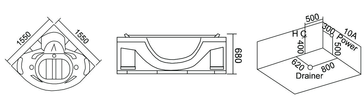 - The bathtub has water outlets in the lowest water main; water does not remain in the bathtub pipes.
