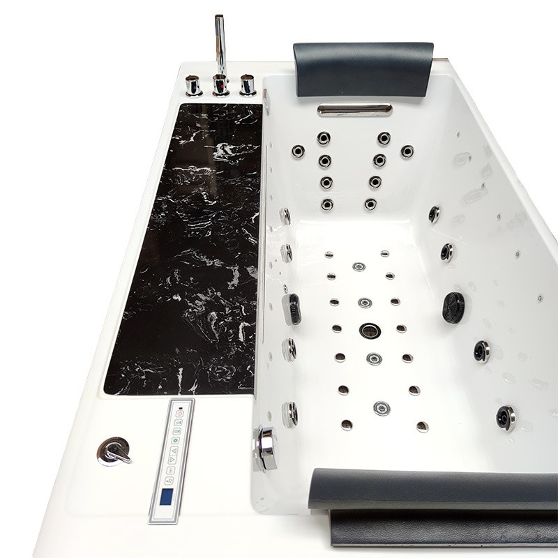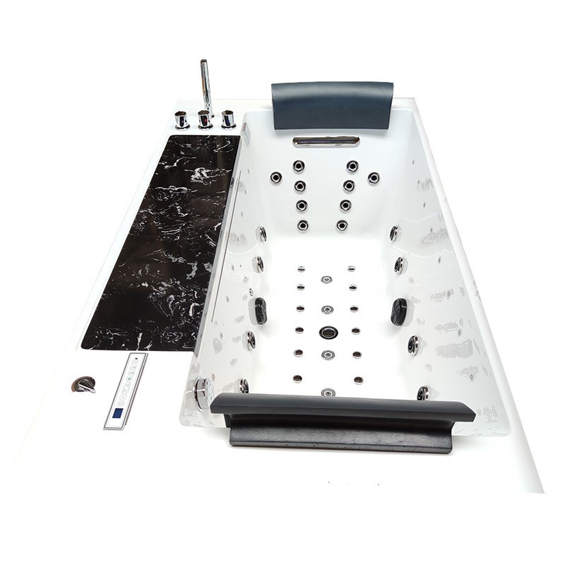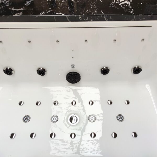 If you buy a whirlpool tub, it must have an OZONE DISINFECTION FUNCTION. Thanks to this function, the tub drainage will be free of bacteria, algae, and other impurities. In addition, you will never feel an unpleasant smell when not using the bathtub for a long time !!!!