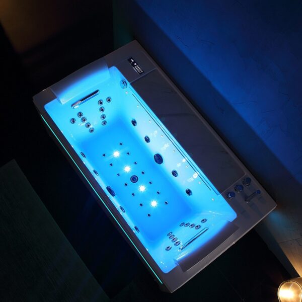 * color therapy with 14 LED lights inside the bathtub and 4 air jets with multi-colored LED lighting