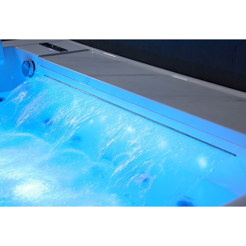 -1 WIDE WATERFALL AT THE WHOLE LENGTH OF THE BATHTUB has water outlets in the lowest main water line, thanks to which the water does not remain in the tub pipes!