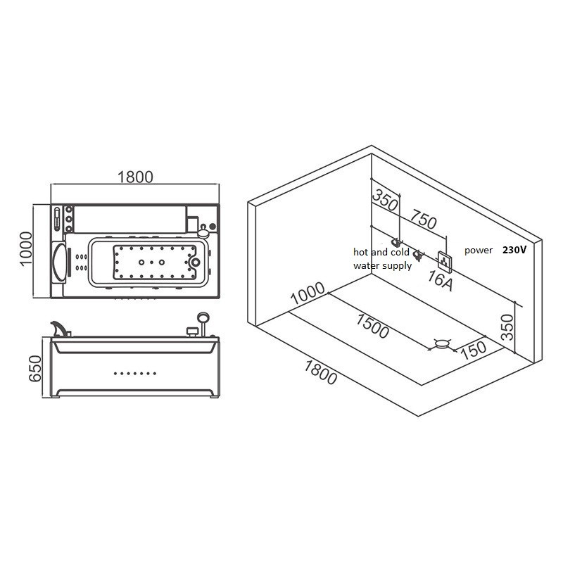 - 1 Water heater 1.5KW (1500W) It is used to maintain the temperature of the water in the bathtub
