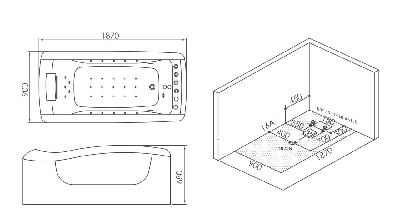 * housing included as shown on the images – from all sides of the bathtub