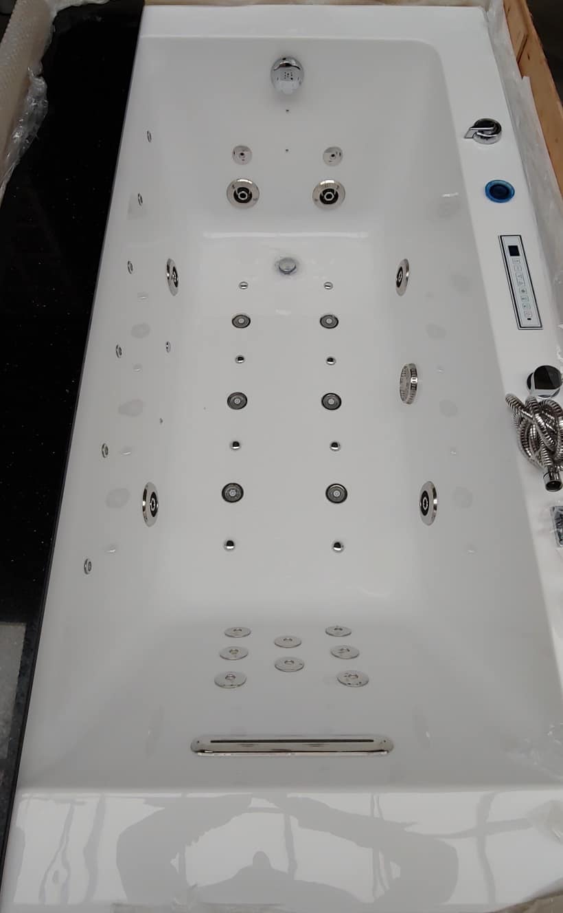 The bath is made of 100% sanitary acrylic. Touch control panel with built-in radio, Bluetooth function, and USB output MARBLE PLATE IN BLACK COLOR !!!