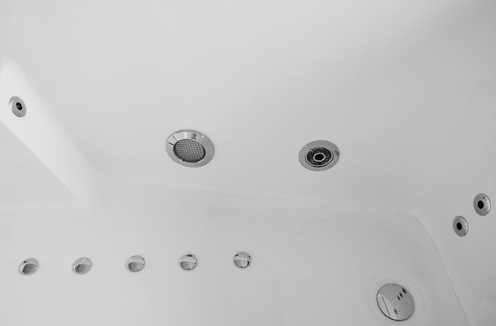 A special drain under the showerhead, the water that drips down the shower hose does not drip under the bathtub but is drained into the sewage system.