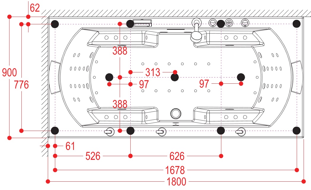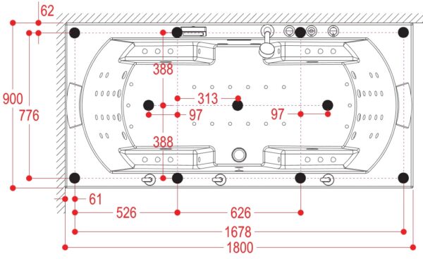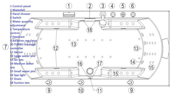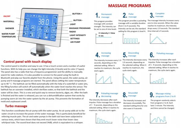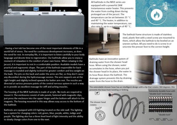 - Special drain under the showerhead, water that drips over the shower hose does not drip under the bathtub but is drained to the sewage system.